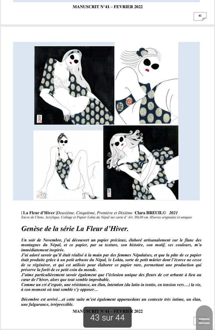 “All of Clara Breuil's works betray great passion and sensuality but also fragility (the finesse of the features, lines, sketched faces...) uncertainty, sometimes fear, a need to be found, welcomed , entwined while wanting not to depend…