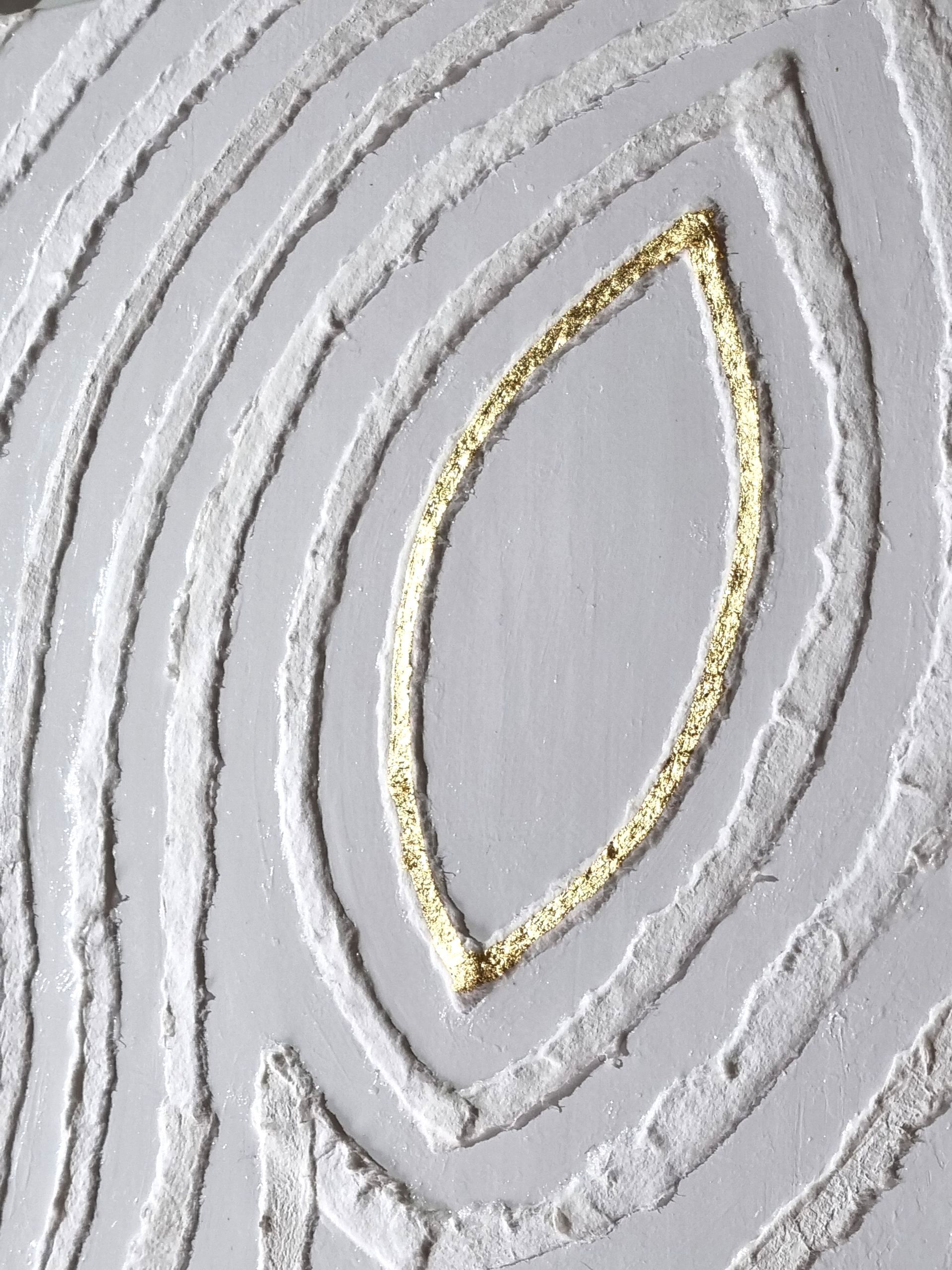 Acrylique sur toile de lin collage dentelle de 1870, feuille d'or sur toile de lin